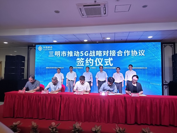 好博最新官应邀参展并与中国移动三明分公司签订关于推动5G战略对接合作协议,好博最新官副总裁孙平代表公司出席签约仪式。