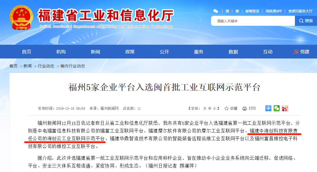 好博最新官“海创云”平台入选闽首批工业互联网示范平台