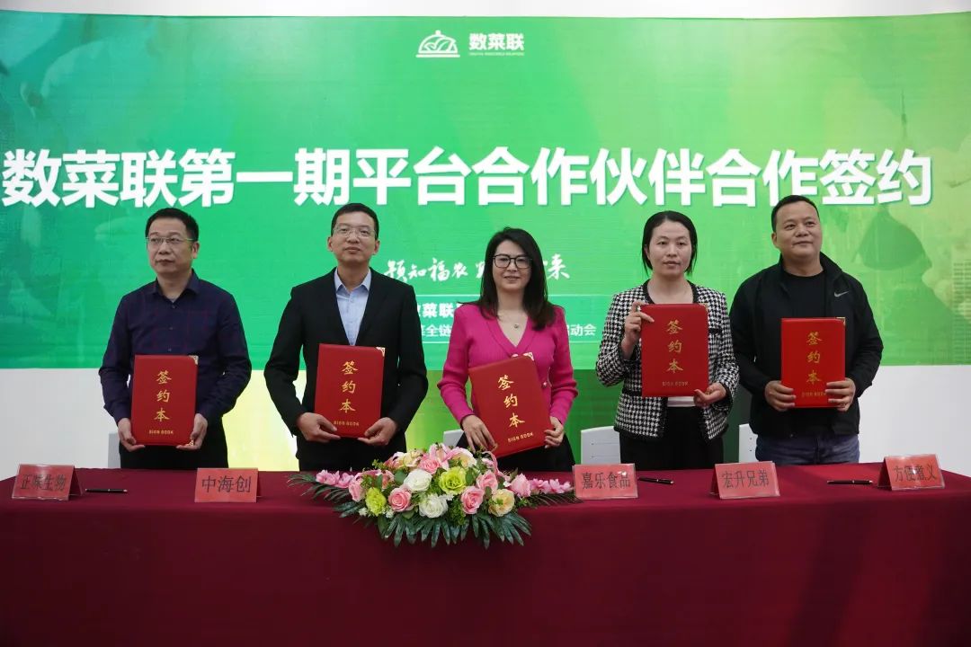 随后,天马食品、东水食品、泽霖食品、味太太食品、嘉乐食品、宏升兄弟、方便煮义、正味生物、金麦园食品、乐鸿国际、醉悦臣生物、大润优餐饮,共12家企业代表上台,作为数菜联第一期平台好博(中国)进行签约。
